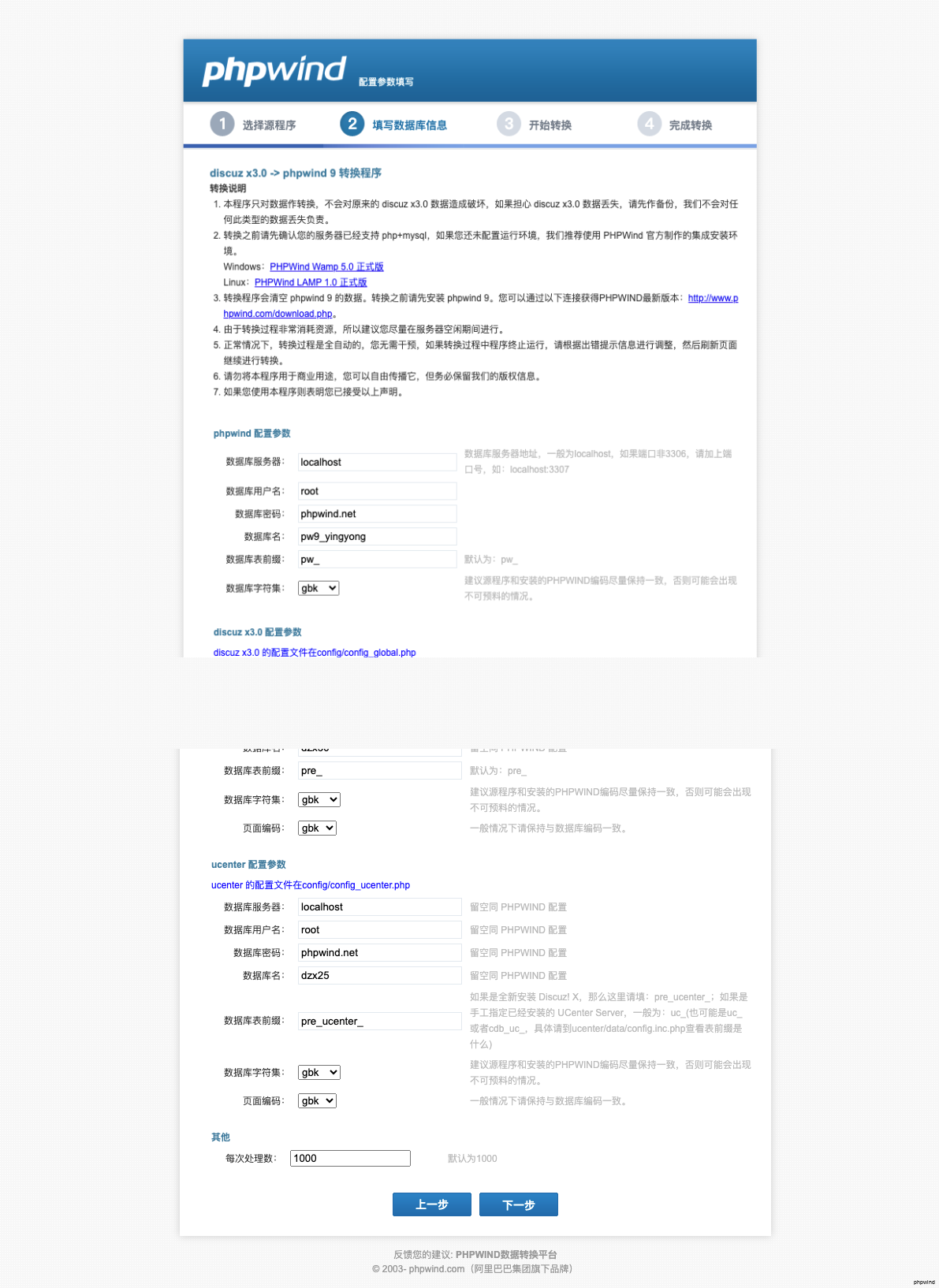 1.请先安装phpwind程序 2.将本转换程序pwb,用ftp上传到phpwind程序的根目录下。比如pw程序的访问地址是http://www.abc.com,那么请用http://www.abc.com/pwb来访问转换程序。 3.浏览器打开http://www.abc.com/pwb后,请按照步骤一步一步执行即可。