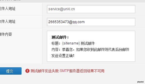测试邮件发送失败:SMTP服务器返回结果不可用