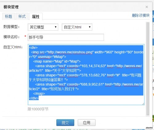 <area shape="rect" coords="103,14,374,63" href="http://wenni.me/article/1"  title="关于“大学知网”">